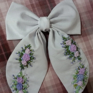 Custom Hand Embroidered Hair Bow, Custom Name Eyeglass Strap, Floral Bow Barrette, Handmade Linen Hair Clip, Hair Accessories for Women