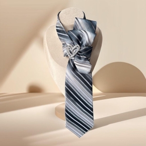 Elegant Necktie Necklace for Women – Handmade Bow Tie Accessory with Heart Brooch Pin in Gray – Perfect gift for Mom – Skinny scarf