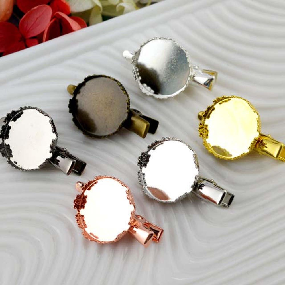 20 Brass Alligator Hair Clips W/ Crown Edged 20mm Round Bezel, Brass Blank Hair Barrette, Blank Hair Clip For Hair Accessories — 6 Colors
