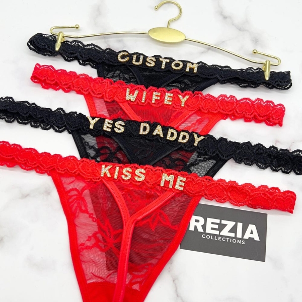 Custom Thong G-strings With Gold Charms Name, Personalized Thong With Name, Custom Thong, Custom Name Thong, Anniversary Gift