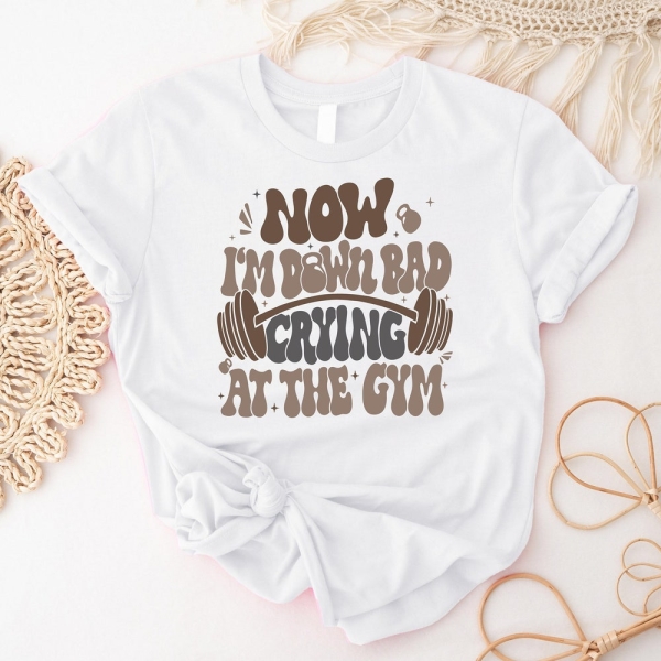 Now I’m Down Bad Crying At The Gym T-Shirt, Funny Gym Weightlifting Shirt, Hard Workout Fitness Tee, Bodybuilding Shirt, Gift For Gym Lover