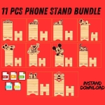 11 Pcs Wooden Phone Stand Bundle Laser Cut Templates, Phone Stand Laser Cut SVG | Cell Phone Stand SVG Bundle |