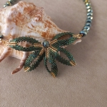 Handmade Green Star Necklace With Miyuki Beads, Crystal Cord, Gold-Plated Chain, Unique Jewelry For Women, Perfect Gift |