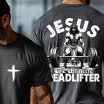 Jesus The Ultimate Deadlifter Shirt Funny Jesus Tee Christian Workout Shirt Gym Faith Tee Religious Fitness Apparel with Motivational Design |