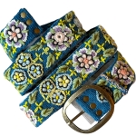 Embroidered Belt, Peruvian Belt, Wool Belt, Flower Belt, Bohemian Belt, Floral Ethnic Belt, Womens Handmade - Garden Bloom/Teal Base |