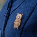 Little bear Pin Badge Brooch - Handmade and hand carved wooden pins - cute funny animal characters for clothes, jeans and bags |