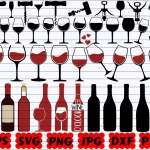 Wine Silhouette | Wine Cut File | Wine Clipart | Wine Glass SVG | Wine Bottle SVG | Corkscrew SVG | Drinking Silhouette | Alcohol Silhouette |