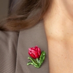 Red Tulip Brooch, Handmade Floral Pin, Elegant Flower Charm, Spring Accessory, Romantic Jewelry, Gift for Women, Bridesmaid, Birthday Gift |