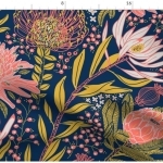 Table Linens "Protea Garden" Cotton Fabric Tablecloth, Runner, Placemat, Napkin - Large Orange and Green Floral on Black |
