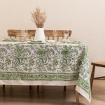 Green French Tablecloth Cover,Block Printed Tablecloth Floral Dinning TableCloth ,ElegantDecoration, RectangleTablecloth,ChristmasTablecloth |