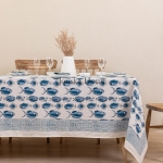 Blue and white Fish Indian Tablecloth, Block Printed Tablecloth, Boho Table Decor, Dinning Table cloth, Table Linen Runner Mats Napkins Set |