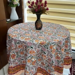 Handcrafted Indian Block Printed Tablecloth - Cotton, Boho Floral Design, Dining Table Cover, Mid Century Wedding & Party Decor Events |