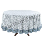 Round Tablecloth, Powder and Pigeon Blue, Green Indian Hand Block Floral Printed Table Cover, Vintage, French Tablecloth, Home and Living |