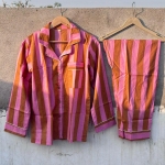 Indian Handmade 100% Cotton Pajama Set Night Wear, Soft Cotton Night Suit-Pure Cotton Pj's,Striped Print Pajamas, Pajamas Set |